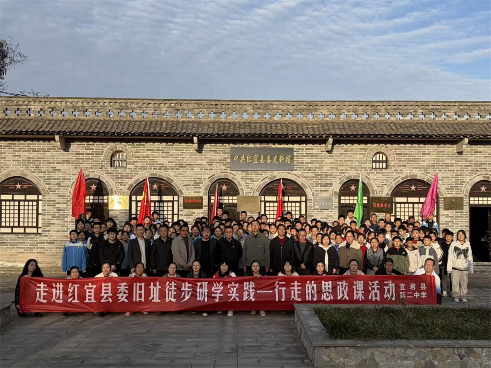 为了深入学习贯彻党的二十大精神,传承红色基因,赓续红色血脉,引导广大青少年坚定理想信念,厚植爱党爱国情怀,讲好宜君故事,加强思政课一体化建设,培养学生吃苦耐劳的精神,磨砺意志品质,11月12日中午,宜君县第二中学组织全校师生开展了一场别开生面的徒步研学实践——行走的思政课活动。此次活动的目的地是承载着厚重革命历史的红宜县委旧址,师生们用脚步丈量信仰之路,以实践感悟初心使命。